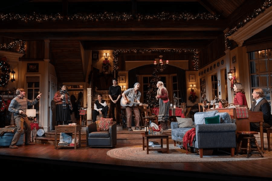 Although “Cult of Love” isn’t a musical, the music is one of the best parts of the show. Music is an integral part of their family and there are instruments carefully placed in various parts of the gorgeous family room /dining room. (The family that sings and plays together…) The beautiful setting, designed by John Lee Beatty,is an idyllic farmhouse in Connecticut bursting with holiday decorations.